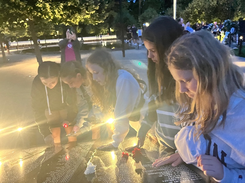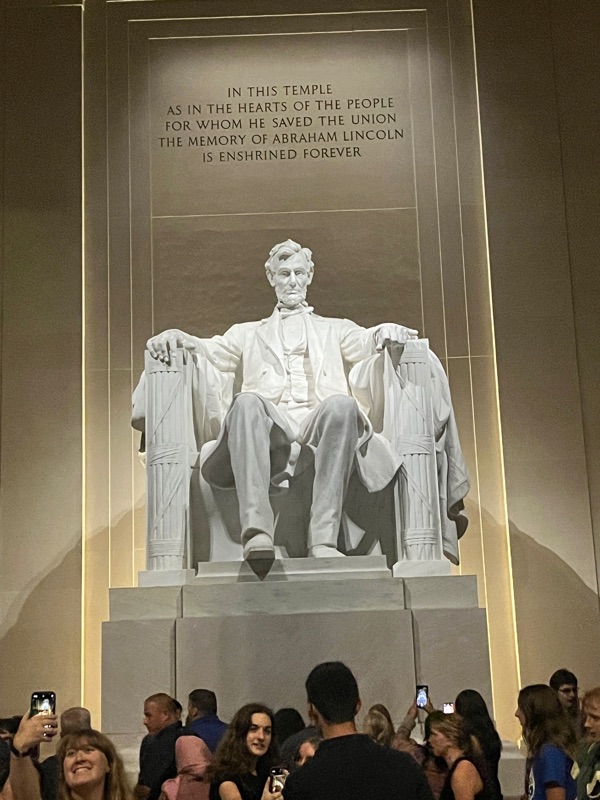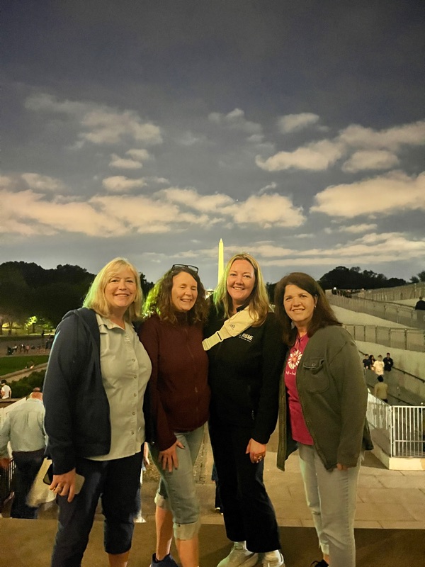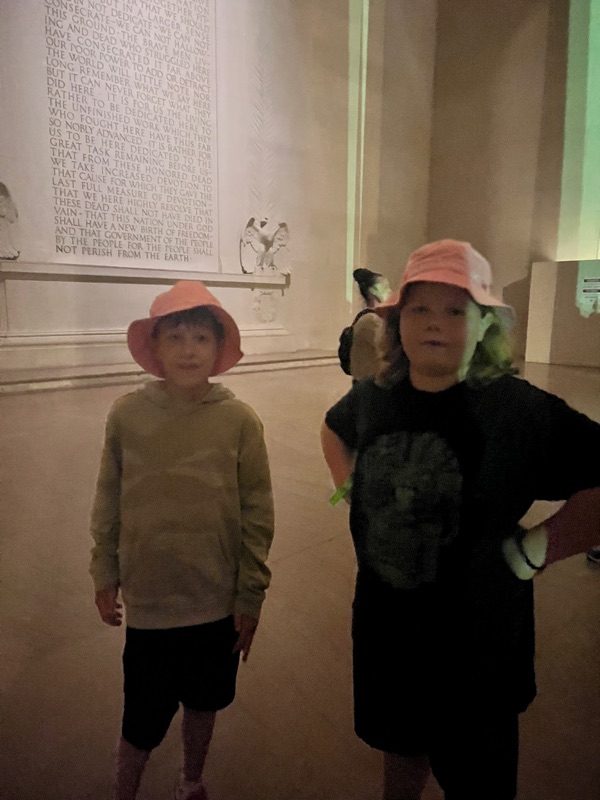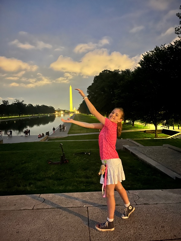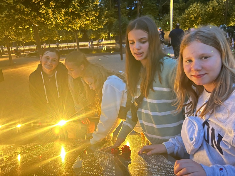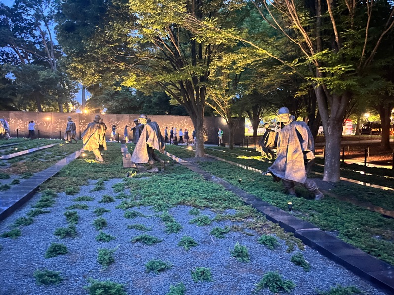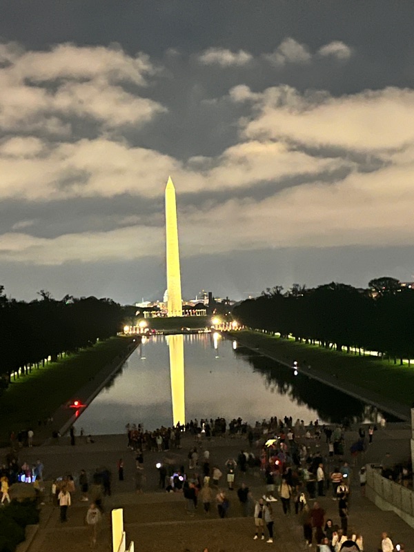 A night time memorial tour helped us walk off our energy after dinner! Fitbits are telling us we walked about 7 miles today….